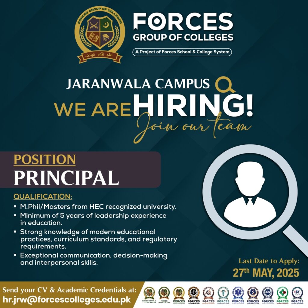 Please Share CV to hr.jrw@forcescolleges.edu.pk